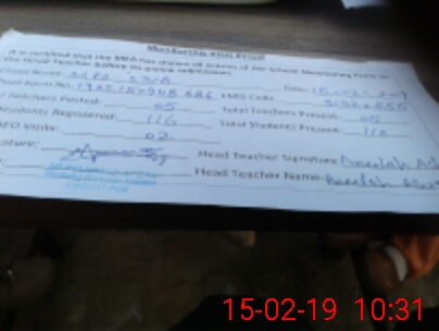 | Attendance Register | Head Teacher | MEA with School | Visit Proof |