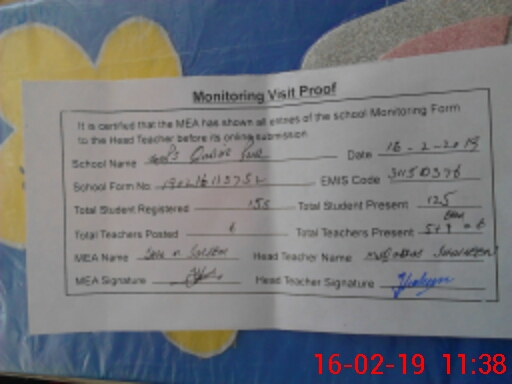 | Attendance Register | Head Teacher | MEA with School | Visit Proof |