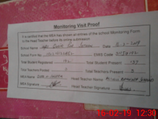 | Certified that this School was Inspected by the Undersigned MEA/DMO Today and the Information Stated Above is as Per Record. | |||||