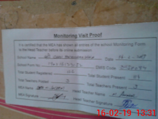 | Attendance Register | Head Teacher | MEA with School | Visit Proof |