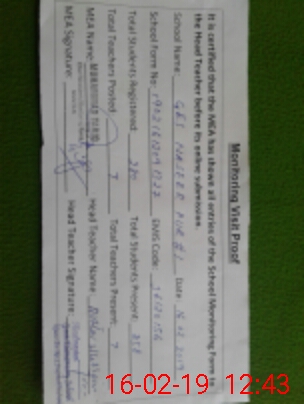 | Certified that this School was Inspected by the Undersigned MEA/DMO Today and the Information Stated Above is as Per Record. | |||||