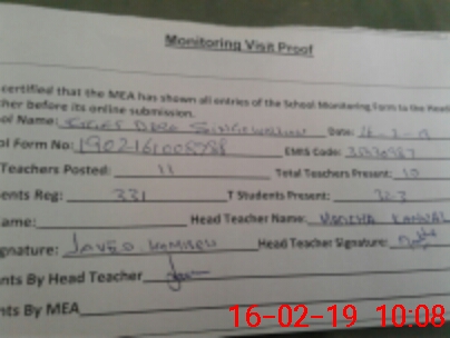 | Certified that this School was Inspected by the Undersigned MEA/DMO Today and the Information Stated Above is as Per Record. | |||||