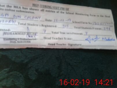 | Certified that this School was Inspected by the Undersigned MEA/DMO Today and the Information Stated Above is as Per Record. | |||||