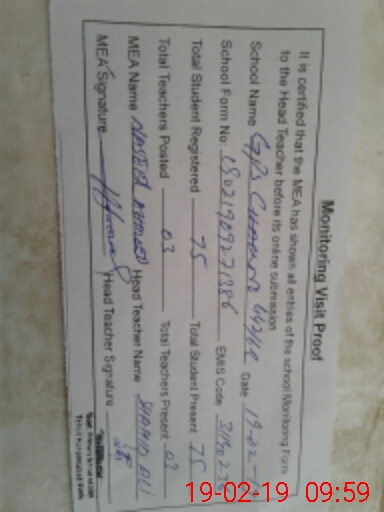 | Certified that this School was Inspected by the Undersigned MEA/DMO Today and the Information Stated Above is as Per Record. | |||||