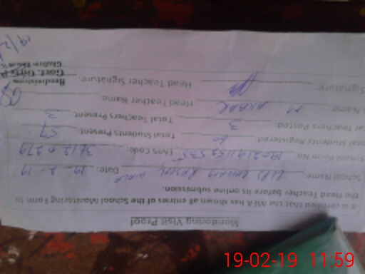 | Certified that this School was Inspected by the Undersigned MEA/DMO Today and the Information Stated Above is as Per Record. | |||||