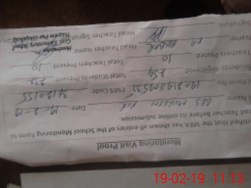 | Certified that this School was Inspected by the Undersigned MEA/DMO Today and the Information Stated Above is as Per Record. | |||||