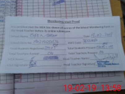 | Attendance Register | Head Teacher | MEA with School | Visit Proof |