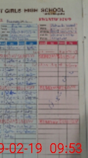 | No. of Students Present - Female | 11 | 0 | 29 | 42 | 46 | 50 | 72 | 69 | 63 | 56 | 50 | 49 | 38 | 575 | ||