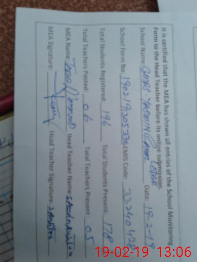 | Certified that this School was Inspected by the Undersigned MEA/DMO Today and the Information Stated Above is as Per Record. | |||||