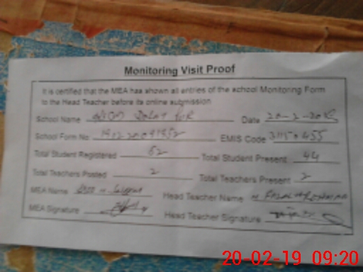 | Attendance Register | Head Teacher | MEA with School | Visit Proof |
