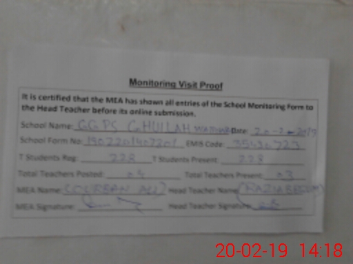 | EMIS Code: 35430723 | Name of School: GGPS GHULLAH WATTOWAN | |||