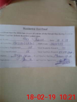 | Certified that this School was Inspected by the Undersigned MEA/DMO Today and the Information Stated Above is as Per Record. | |||||