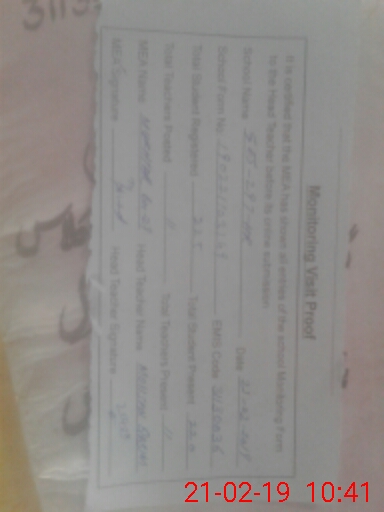 | Certified that this School was Inspected by the Undersigned MEA/DMO Today and the Information Stated Above is as Per Record. | |||||