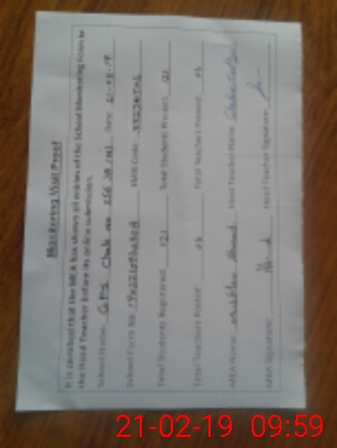| Attendance Register | Head Teacher | MEA with School | Visit Proof |