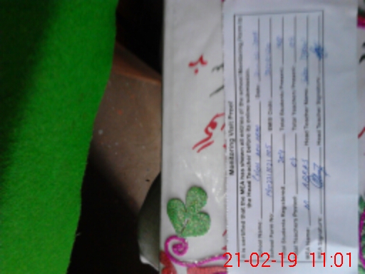 | School Visited by School Health & Nutrition Supervisor (No. of Visits) | 1 | Name1: | NIGHAT AFROZ | Name2: | NIL |