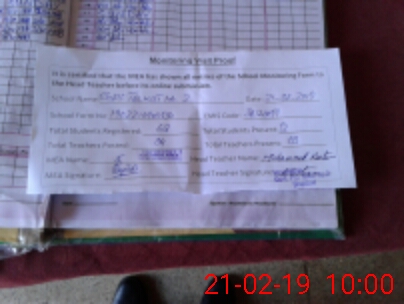 | Attendance Register | Head Teacher | MEA with School | Visit Proof |