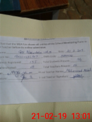 | Certified that this School was Inspected by the Undersigned MEA/DMO Today and the Information Stated Above is as Per Record. | |||||
