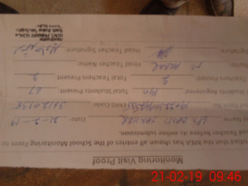 | Certified that this School was Inspected by the Undersigned MEA/DMO Today and the Information Stated Above is as Per Record. | |||||