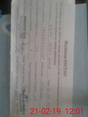 | Monitoring Date: 21-02-2019 | Start Time: 21-02-2019 11:41 AM | End Time: 21-02-2019 12:02 PM | Name of MEA: MU**** TA**** | |