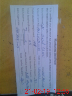 | Certified that this School was Inspected by the Undersigned MEA/DMO Today and the Information Stated Above is as Per Record. | |||||