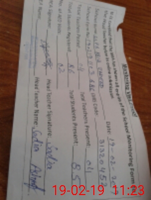 | Attendance Register | Head Teacher | MEA with School | Visit Proof |