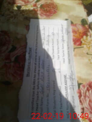 | Certified that this School was Inspected by the Undersigned MEA/DMO Today and the Information Stated Above is as Per Record. | |||||