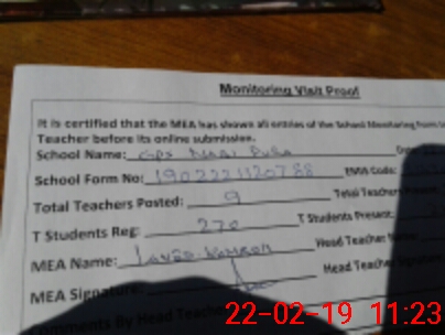 | Attendance Register | Head Teacher | MEA with School | Visit Proof |