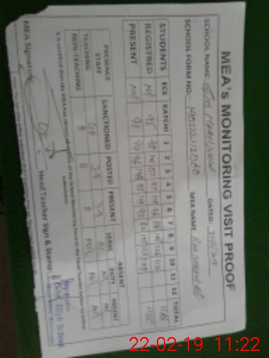| Certified that this School was Inspected by the Undersigned MEA/DMO Today and the Information Stated Above is as Per Record. | |||||