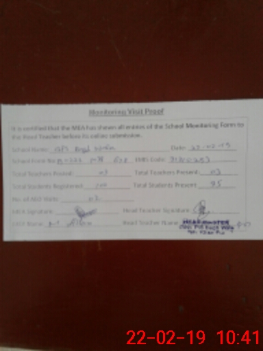 | Certified that this School was Inspected by the Undersigned MEA/DMO Today and the Information Stated Above is as Per Record. | |||||
