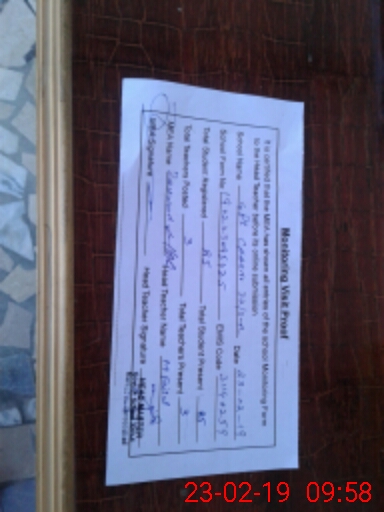 | Total no. of Classrooms: 2 No. of Classrooms Used for Teaching: 2 No. of Classrooms Storing Old Furniture, FTBs, etc: 0Comments if Any: S H N S ZUBAIR GHANI LAST VISIT OF THIS SCHOOL DATED 22 MARCH 2018 AFTER NO VISIT OF THIS SCHOOL TILL TO DATE |