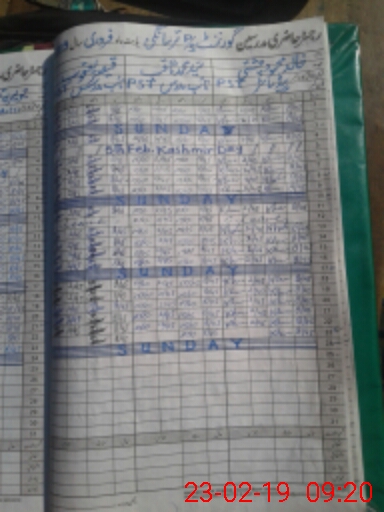 | CNIC | Full Name | Designation | R/C | Absence During Last Calender Month |
