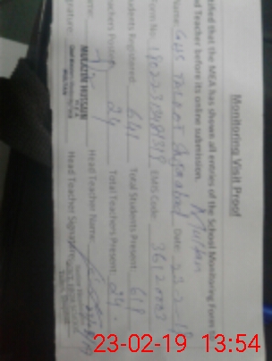 | Certified that this School was Inspected by the Undersigned MEA/DMO Today and the Information Stated Above is as Per Record. | |||||