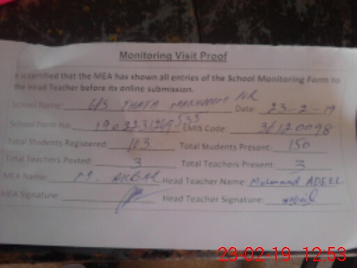 | EMIS Code: 36120098 | Name of School: GPS THATHA MAKHDOOM PUR P/O BASTI KANERA SHUJABAD | |||