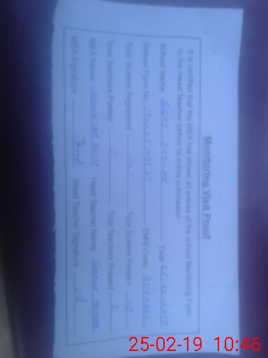 | Certified that this School was Inspected by the Undersigned MEA/DMO Today and the Information Stated Above is as Per Record. | |||||