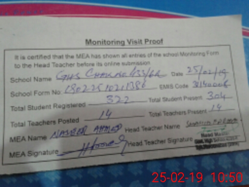 | EMIS Code: 31140008 | Name of School: GHS CHAK NO. 433/6-R | |||