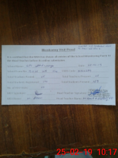 | Certified that this School was Inspected by the Undersigned MEA/DMO Today and the Information Stated Above is as Per Record. | |||||