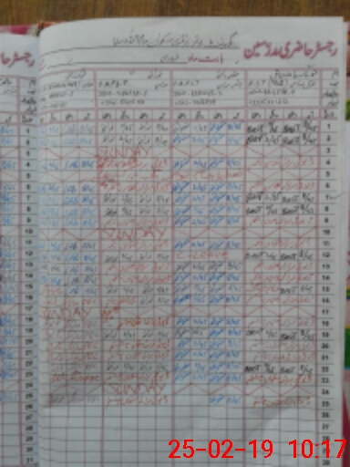 | CNIC | Full Name | Designation | R/C | Absence During Last Calender Month |