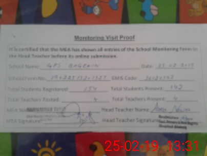 | Attendance Register | Head Teacher | MEA with School | Visit Proof |