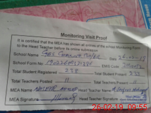 | Certified that this School was Inspected by the Undersigned MEA/DMO Today and the Information Stated Above is as Per Record. | |||||