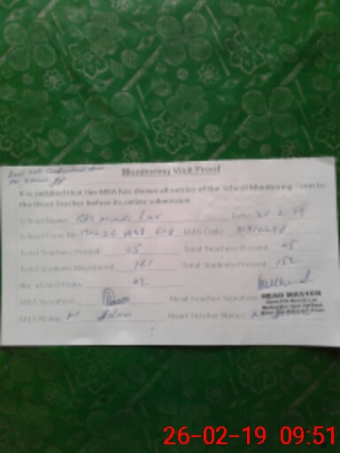 | Monitoring Date: 26-02-2019 | Start Time: 26-02-2019 09:27 AM | End Time: 26-02-2019 09:51 AM | Name of MEA: Mu**** As**** -KP**** | |