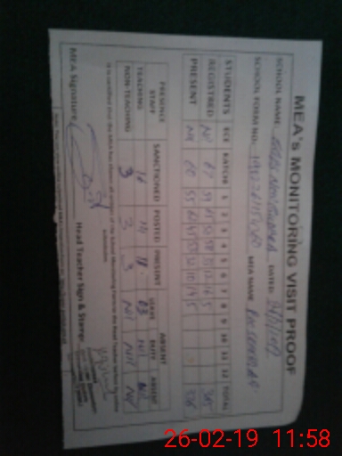 | Attendance Register | Head Teacher | MEA with School | Visit Proof |