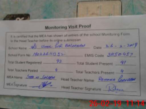 | EMIS Code: 31150457 | Name of School: GPS ISMAEEL BALOCHAN | |||