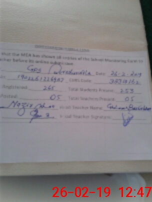 | Certified that this School was Inspected by the Undersigned MEA/DMO Today and the Information Stated Above is as Per Record. | |||||