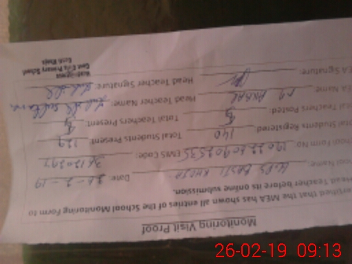 | Certified that this School was Inspected by the Undersigned MEA/DMO Today and the Information Stated Above is as Per Record. | |||||