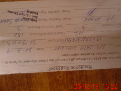 | Certified that this School was Inspected by the Undersigned MEA/DMO Today and the Information Stated Above is as Per Record. | |||||