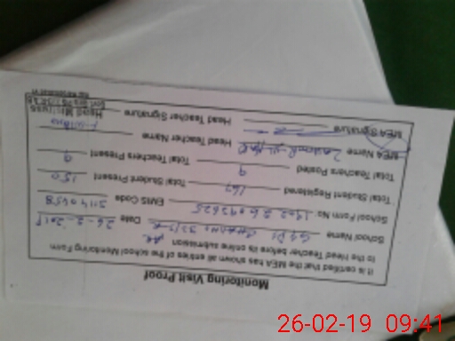| Certified that this School was Inspected by the Undersigned MEA/DMO Today and the Information Stated Above is as Per Record. | |||||