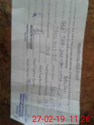 | Attendance Register | Head Teacher | MEA with School | Visit Proof |