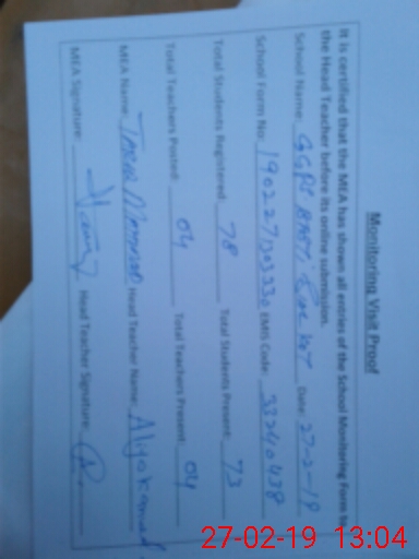 | Certified that this School was Inspected by the Undersigned MEA/DMO Today and the Information Stated Above is as Per Record. | |||||