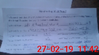 | Monitoring Date: 27-02-2019 | Start Time: 27-02-2019 11:35 AM | End Time: 27-02-2019 11:42 AM | Name of MEA: MA**** ULHA**** KH**** | |
