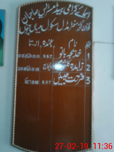 | District: KHANEWAL | Tehsil: MIAN CHANNU | Markaz: MIAN CHANNU-I - FEMALE | Level: Middle | |